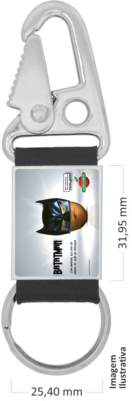 Chaveiro em couro sintético com tubo metálico 25x32mm com personalização e finalização em resina epóxi.
